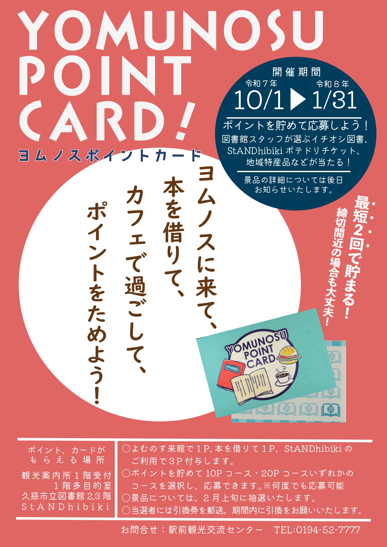 令和7年10月1日(水)~令和8年1月31日(土)の期間内にて、後期の『YOMUNOSUポイントカード』を開始します。